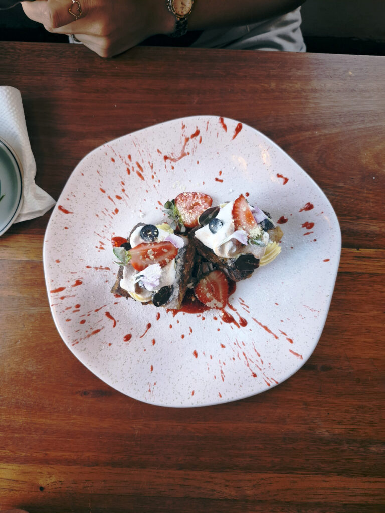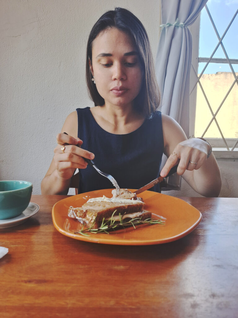Não gente… A Vó Cecília não é a nossa vó… Na verdade é um café aqui em Jaraguá do Sul. Lá na verdade funcionava a Haus Bäckerei e depois que mudou a direção passou a se chamar Vó Cecília. A gente costumava ir bem no inicinho da nossa chegada em Jaraguá do Sul, quando eu e ela não costumávamos trabalhar aos sábados, mas paramos por um tempo. De vez em quando voltamos lá para comer um café da manhã ou pedir um pão artesanal para termos em casa e como a Adilene, minha cunhada, presenteou a Jéssica, não poderíamos perder a oportunidade.